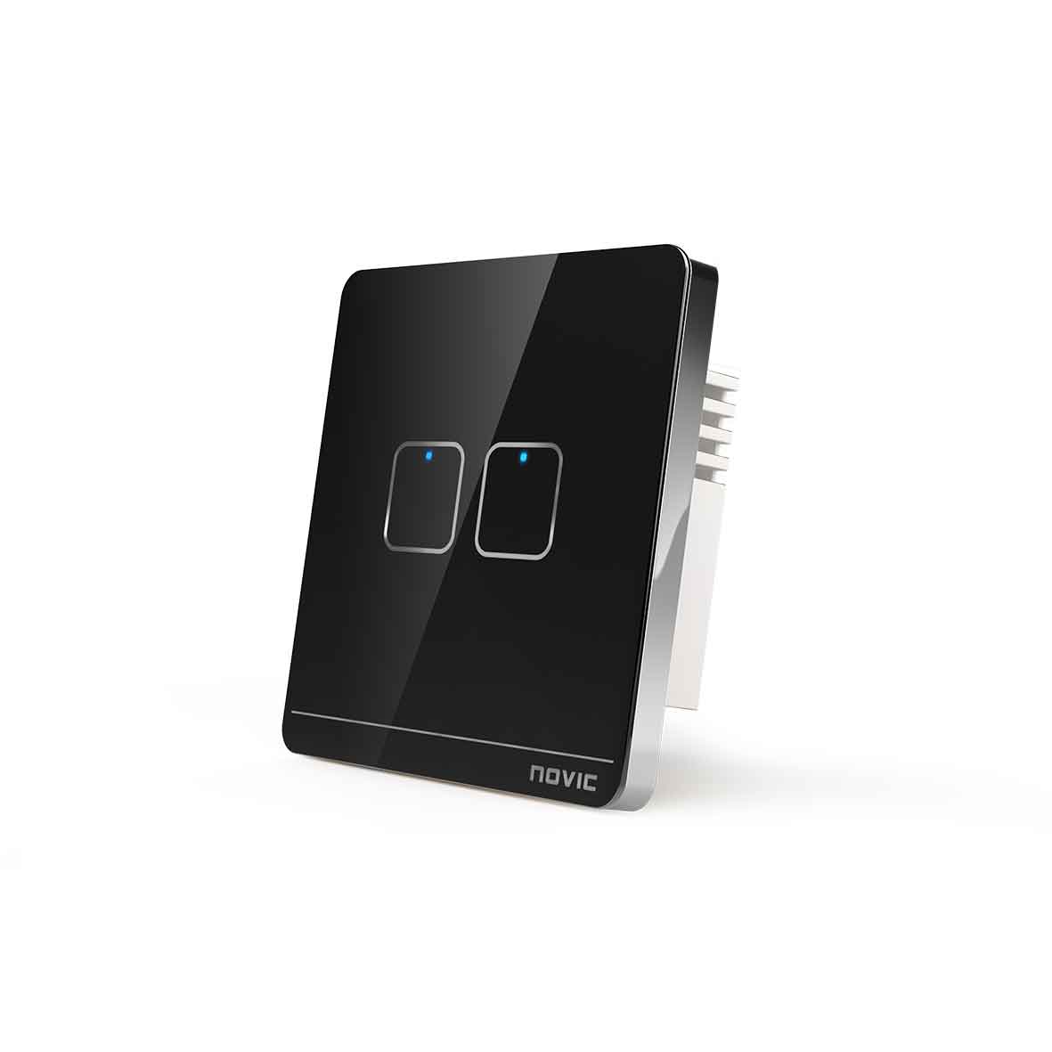 کلید دو پل سری آریا نویک از رویه شیشه ای و فریم آلومینیومی ساخته شده است که به سادگی جایگزین کلیدهای سنتی شده و می توان روشنایی خانه را از طریق قابلیت لمس خود کلید، تلفن همراه از راه دور و نزدیک ، تنظیم زمان بندی اتوماتیک با اپلیکیشن و تنظیم انواع سناریو کنترل کرد.
